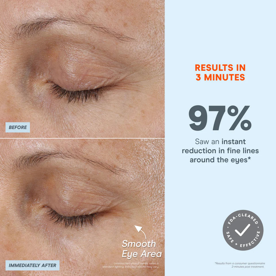 A microcurrent skincare duo that targets the look of fine lines and wrinkles around the eyes, lips, and forehead.